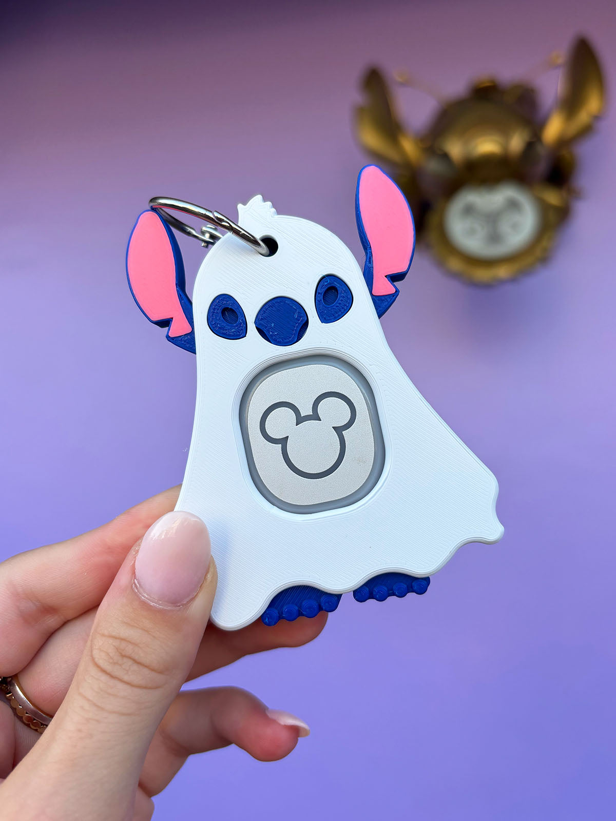 Your favorite Alien Experiment is ready for spooky season! Make sure you have this cute Alien Ghost Experiment Magic Band Buddy for your fall park looks!