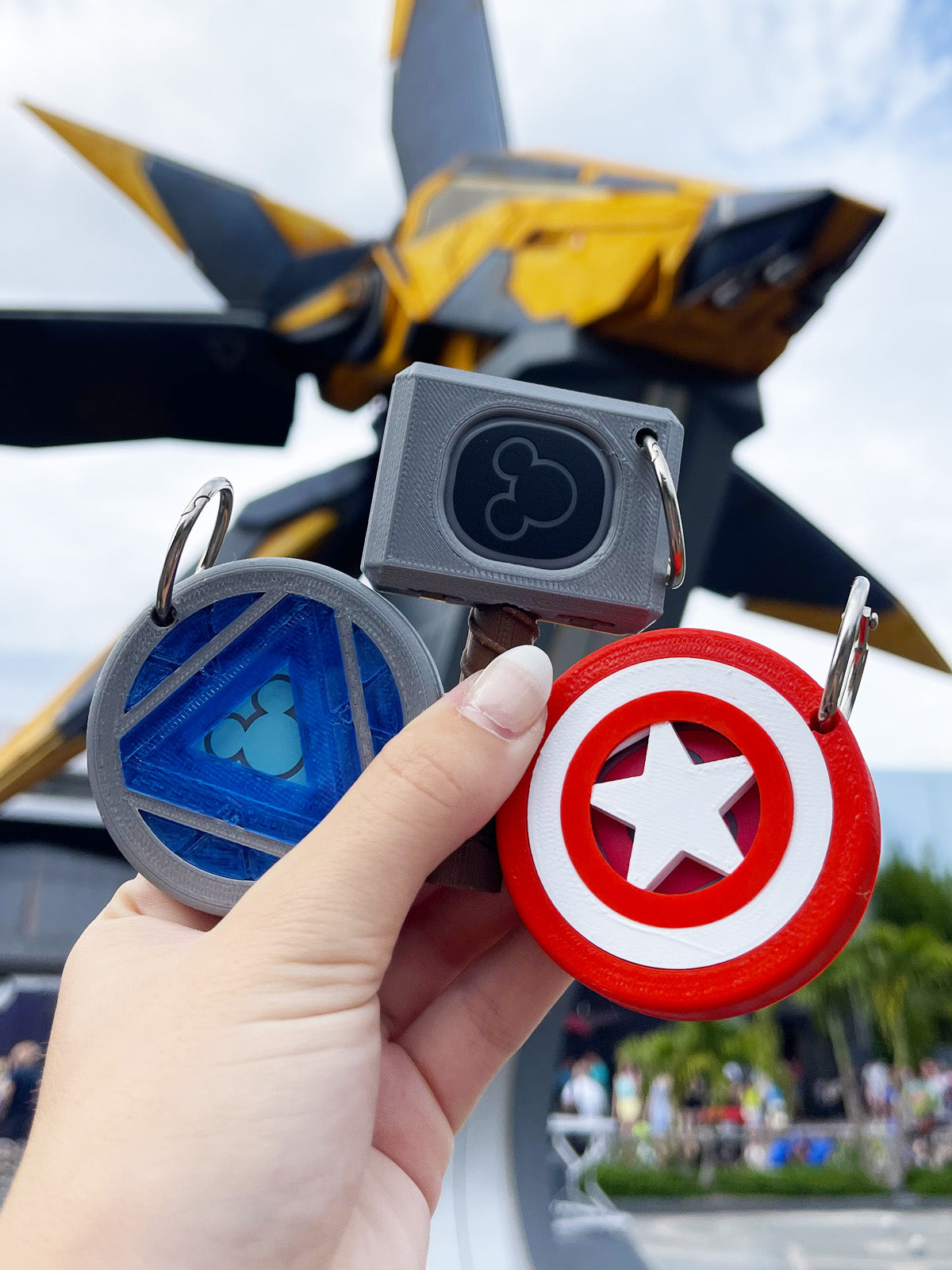 Simply install your Disney MagicBand+ Icon center "puck" into this custom Magic Band Buddy and clip on to belt, clothes, pin lanyard, bag, etc. It will provide easy access to parks, Lightning Lane access, payment kiosks, your resort room, and more while showing off your unique style. Collect them all to coordinate with your outfit, your agenda, or your attitude!