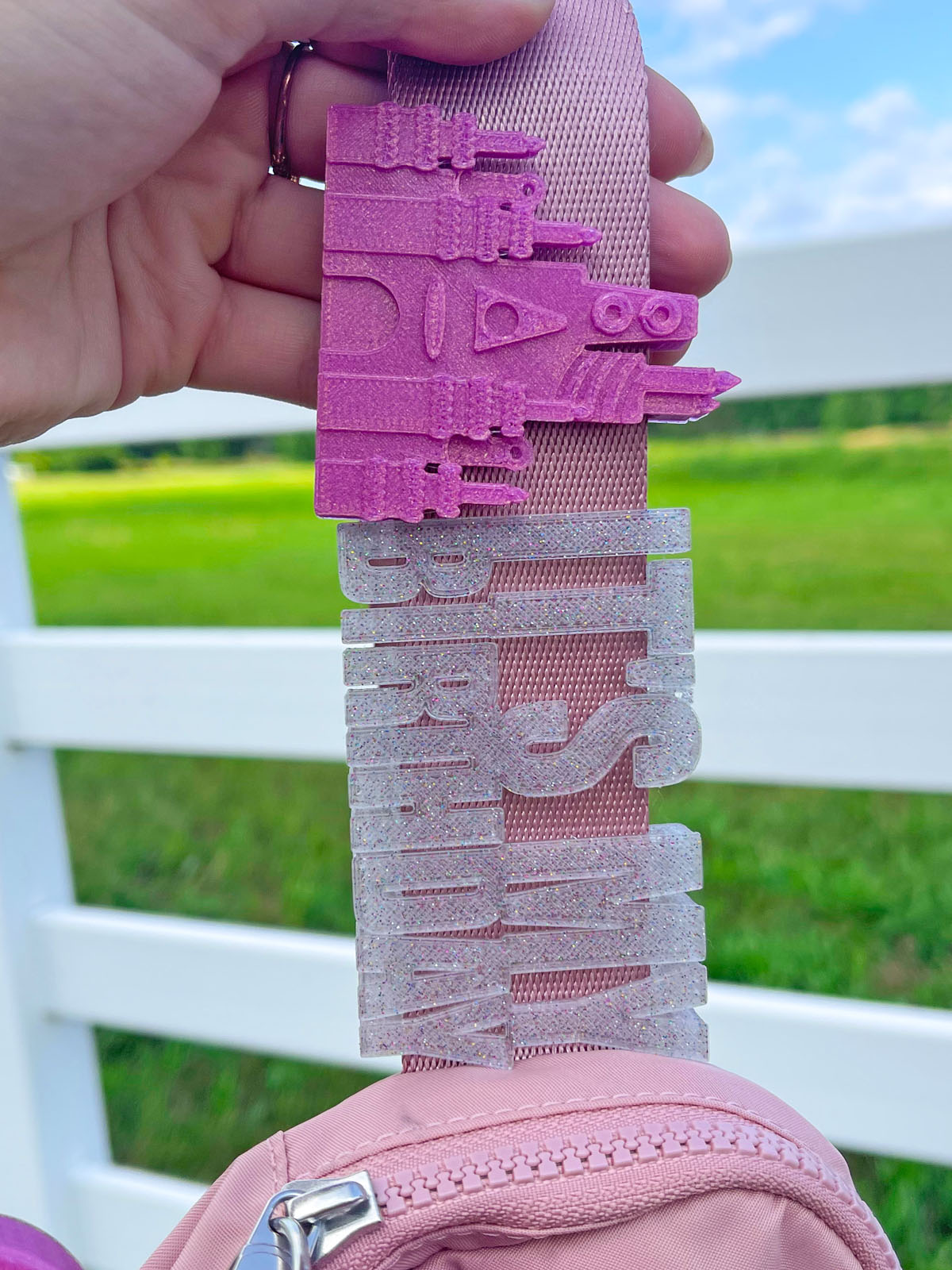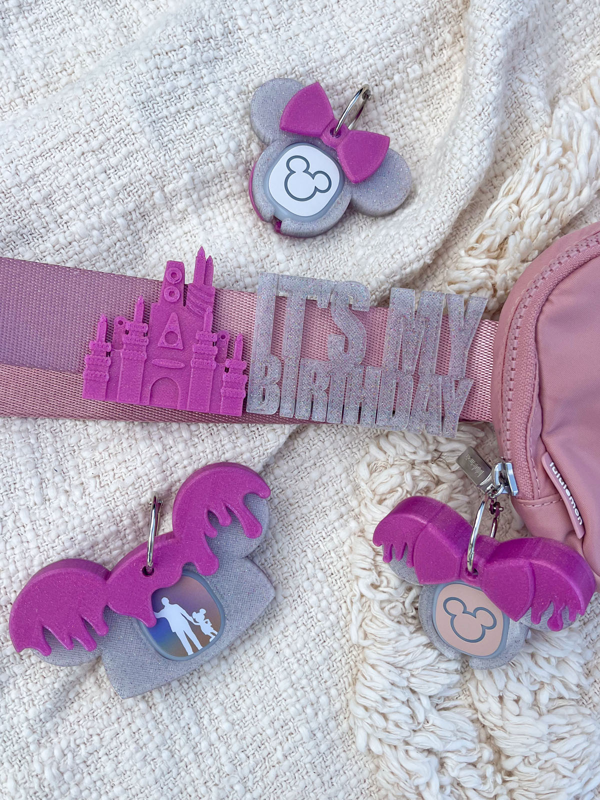 Celebrate your birthday (or birth week, or birth month....) with our Birthday Celebration Belt and Bag Charms! Choose "It's My Birthday" printed in the amazing funfetti filament (silver translucent with multi-color glitter) so it looks AMAZING on any color bag strap or belt and compliments any outfit. Pair it with our classic Birthday Cake Castle in on of our favorite colors: shimmering magenta. These two charms work great as a set or can stand alone.