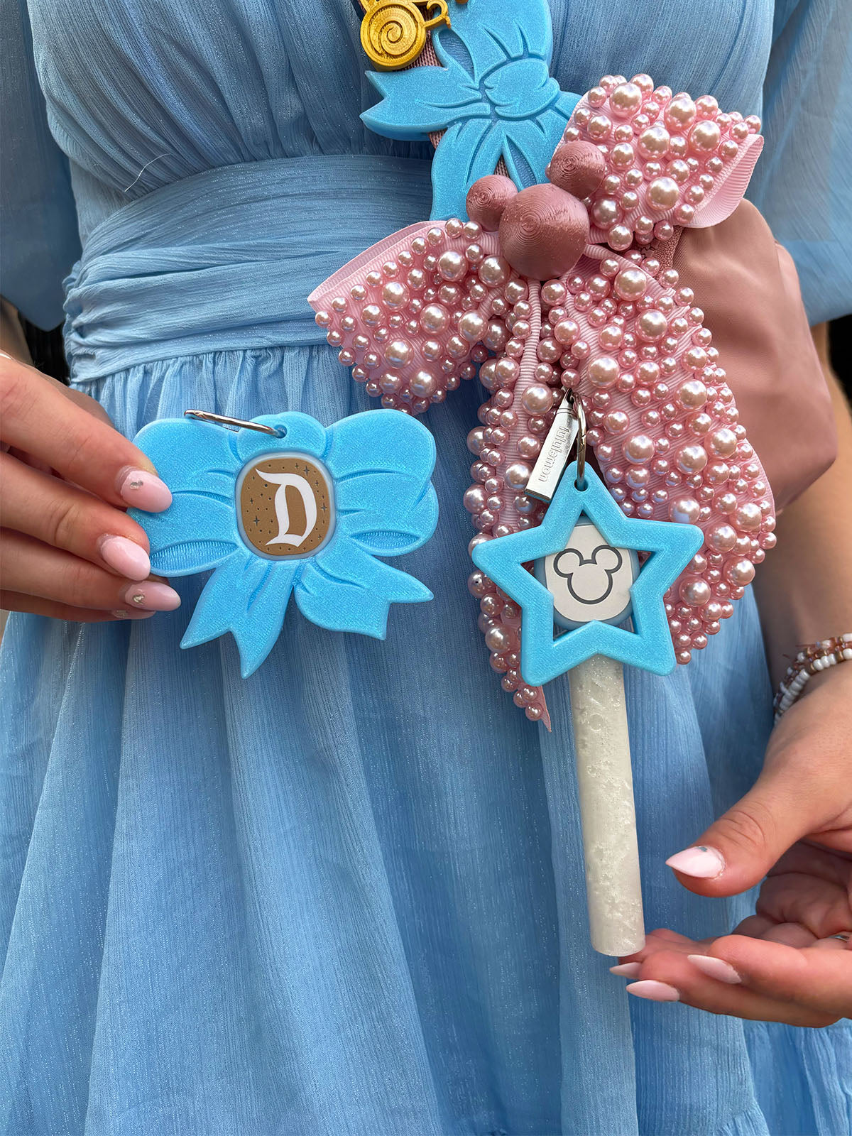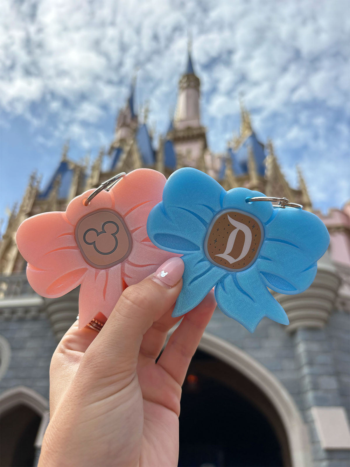 Show your unique style and vibe with your choice of the Pink or Blue Bow Magic Band Buddy!
