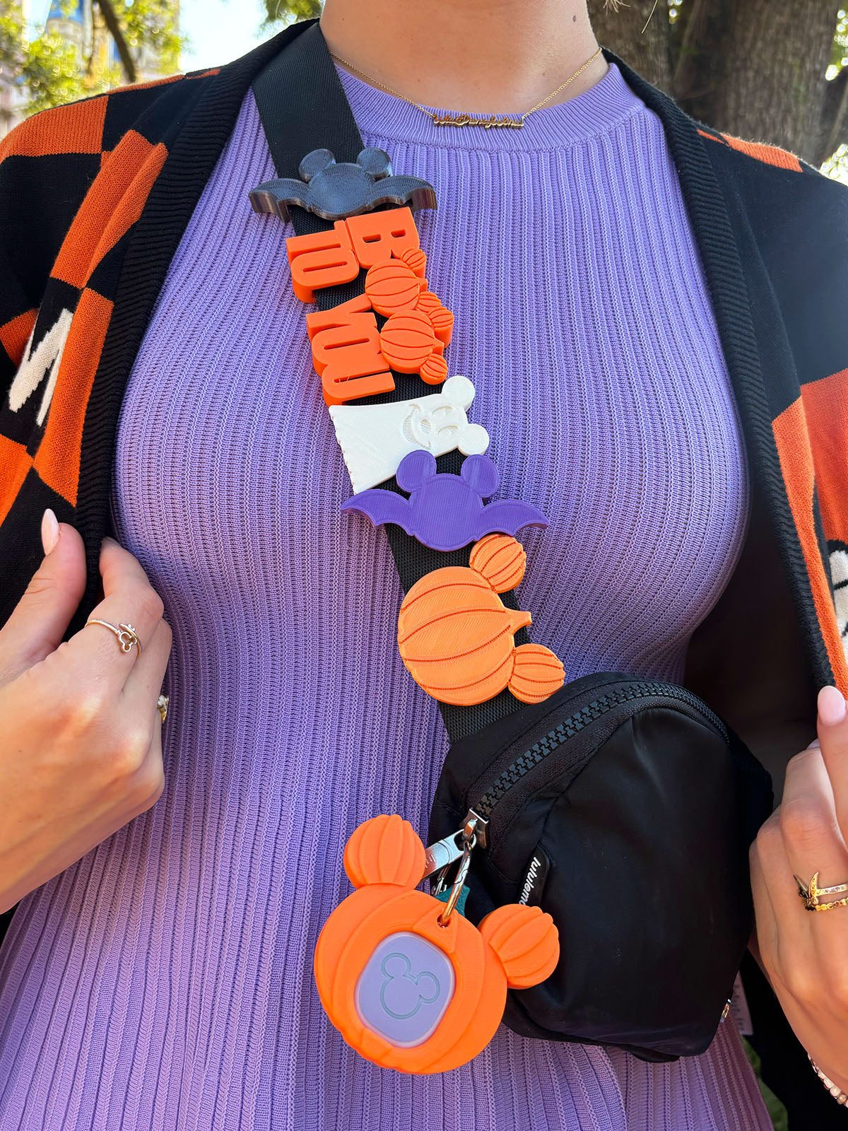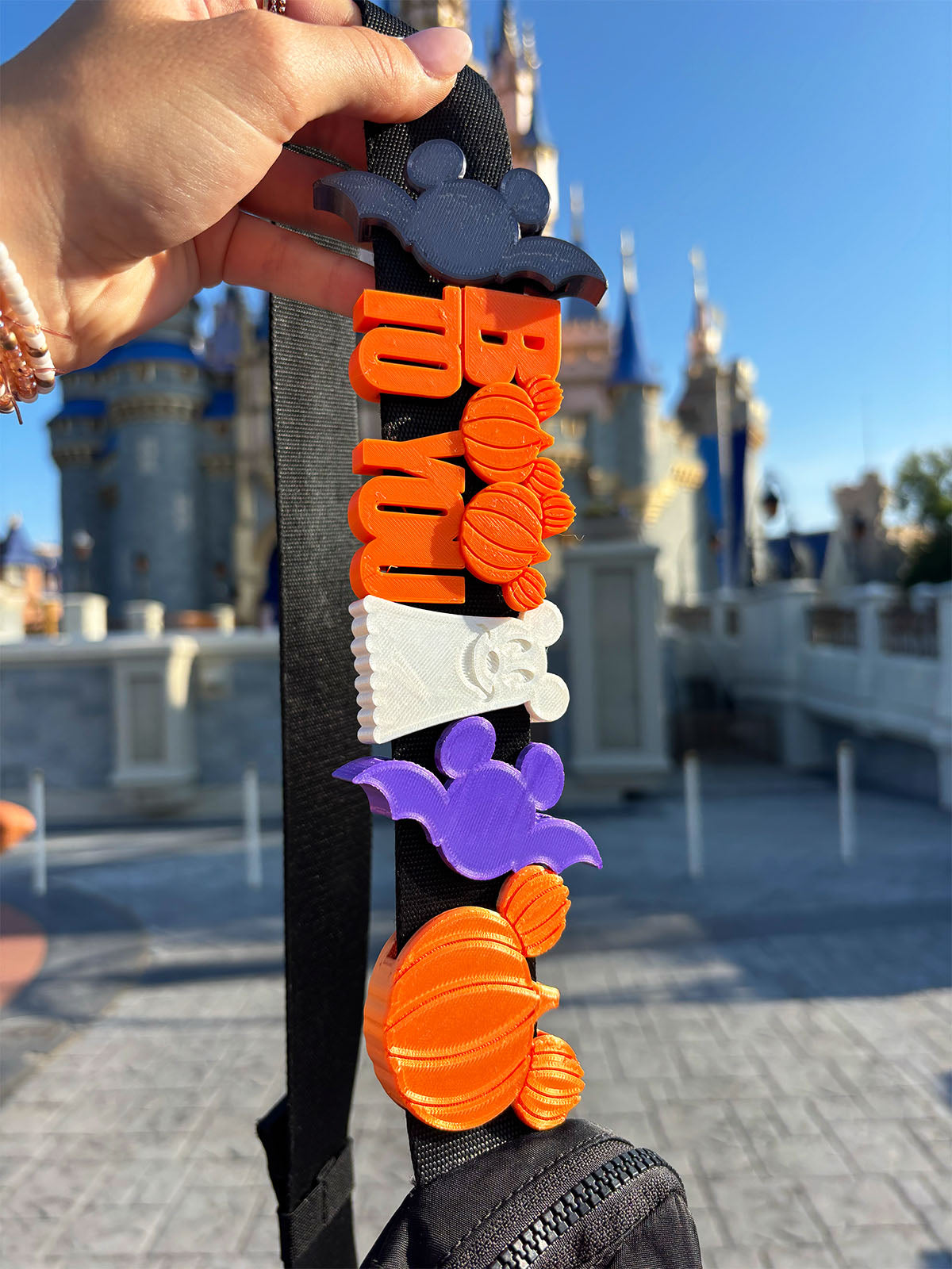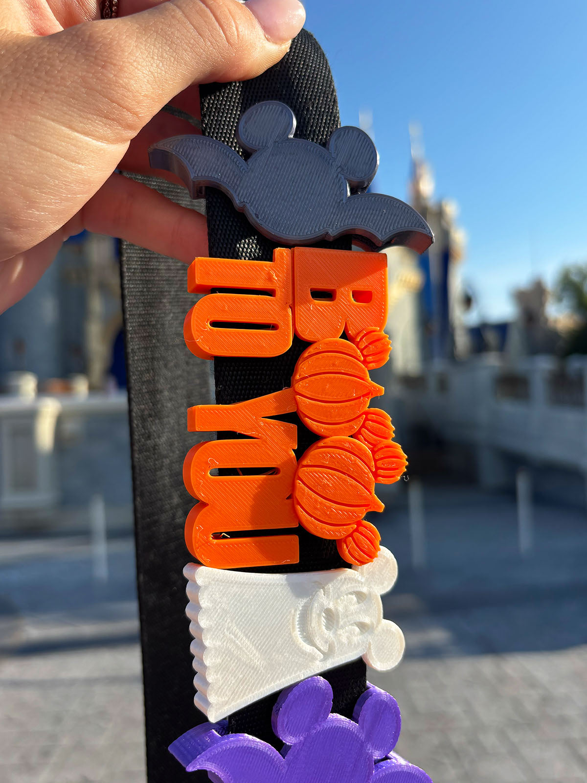 We recommend a Lock Adapter for narrower straps or lanyards less than 1.5" wide. Listing is for one tree charm in green color filament. Other items pictured are not included, but other Bag Charms and Magic Band Buddies are available separately.