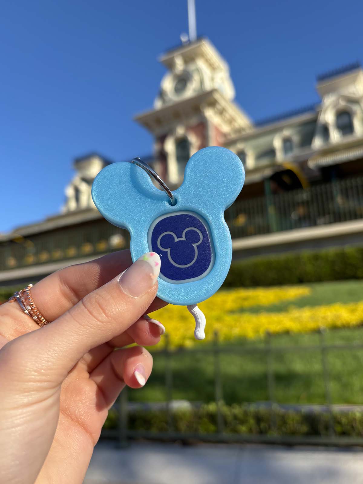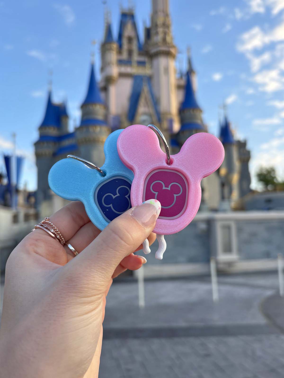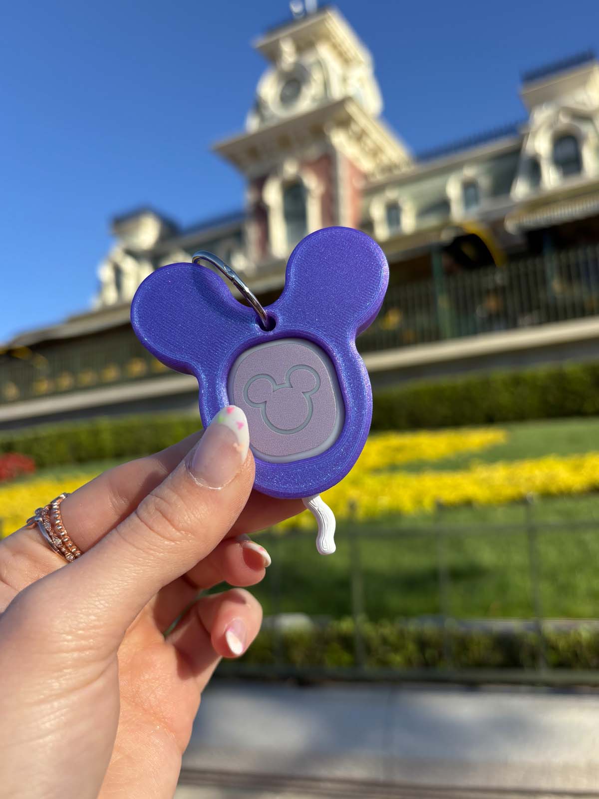 Simply install your Disney MagicBand+ Icon center "puck" into this custom Magic Band Buddy and clip on to belt, clothes, pin lanyard, bag, etc. It will provide easy access to parks, Lightning Lane access, payment kiosks, your resort room, and more while showing off your unique style. Collect them all to coordinate with your outfit, your agenda, or your attitude!