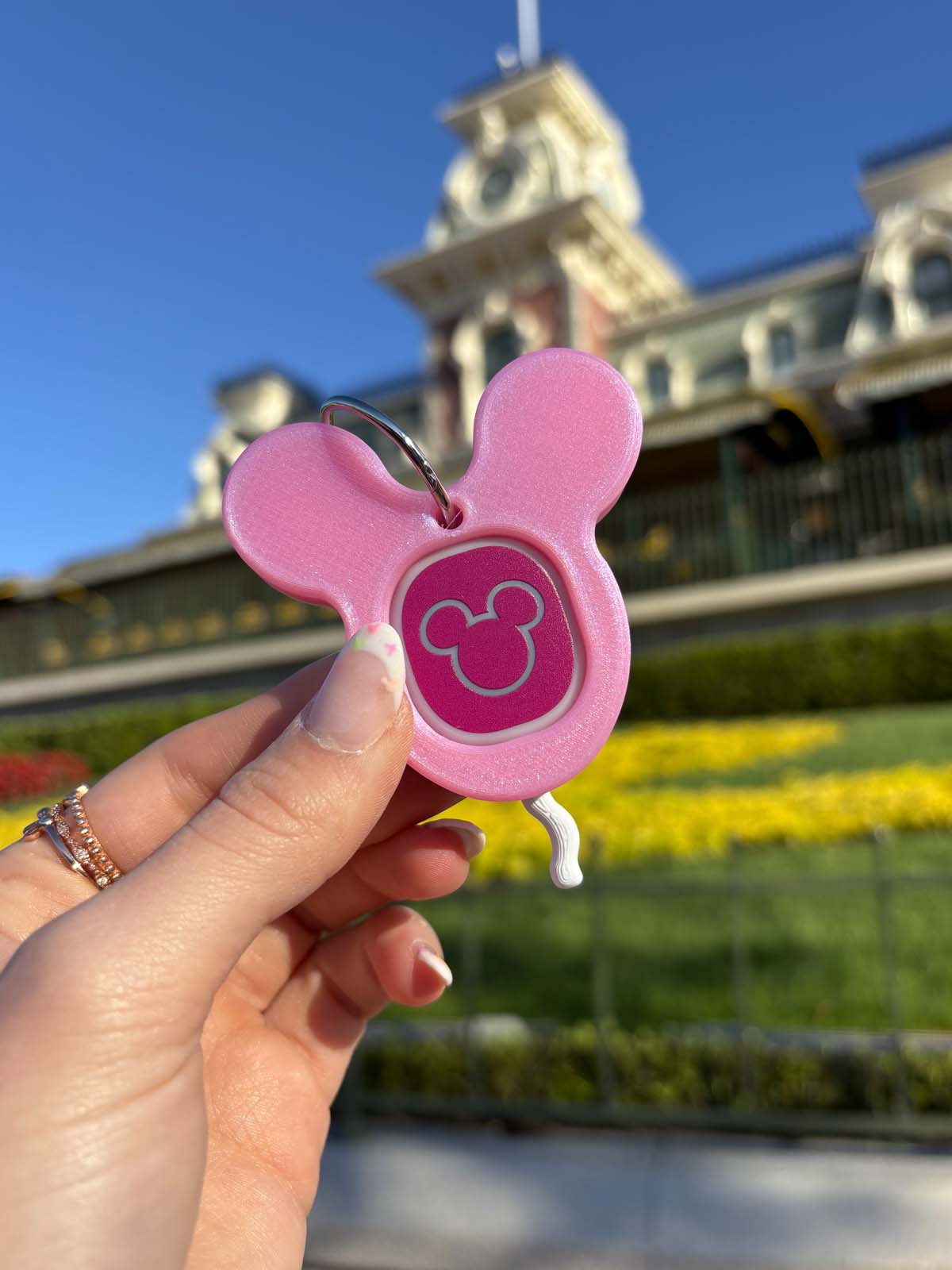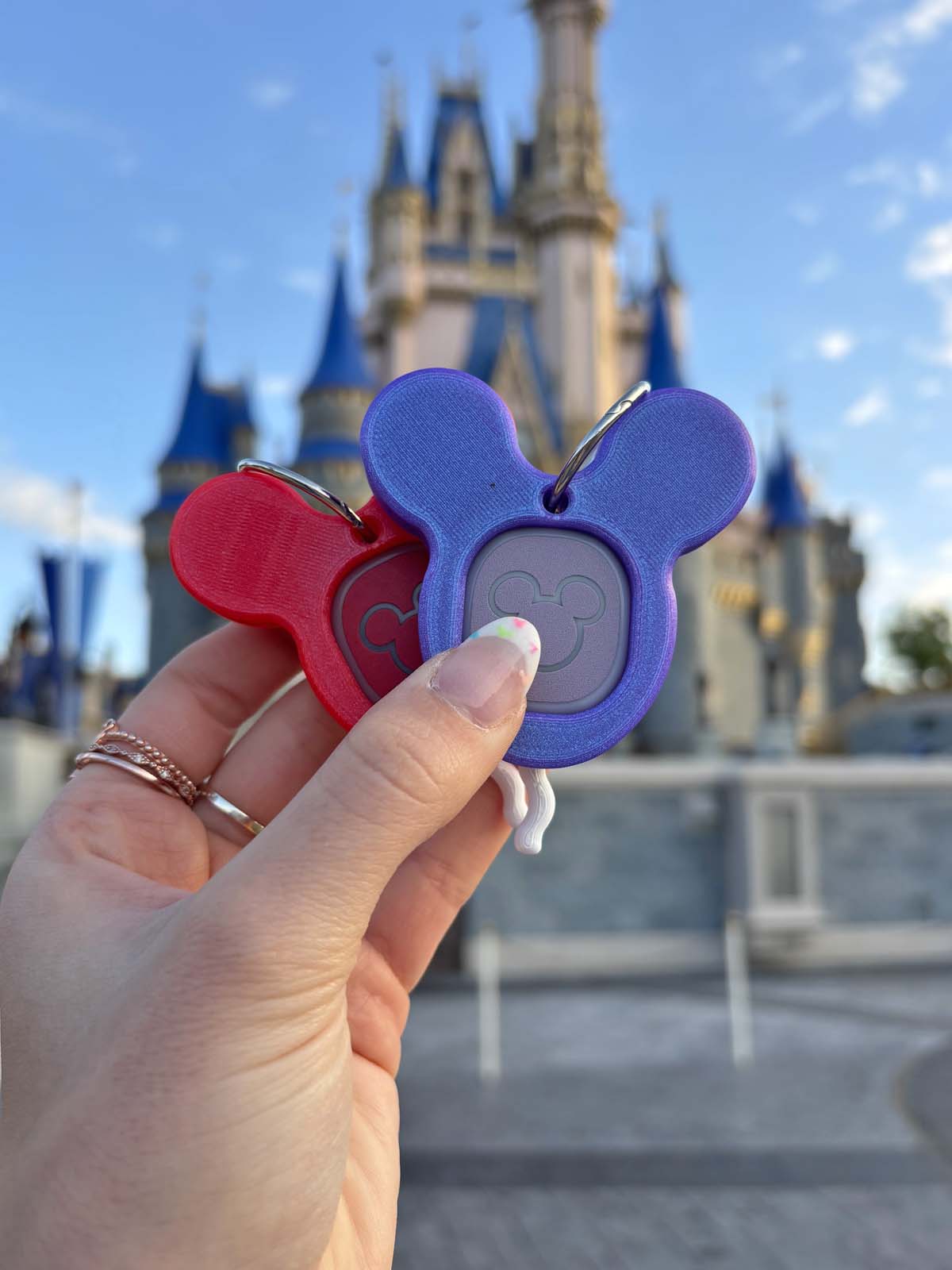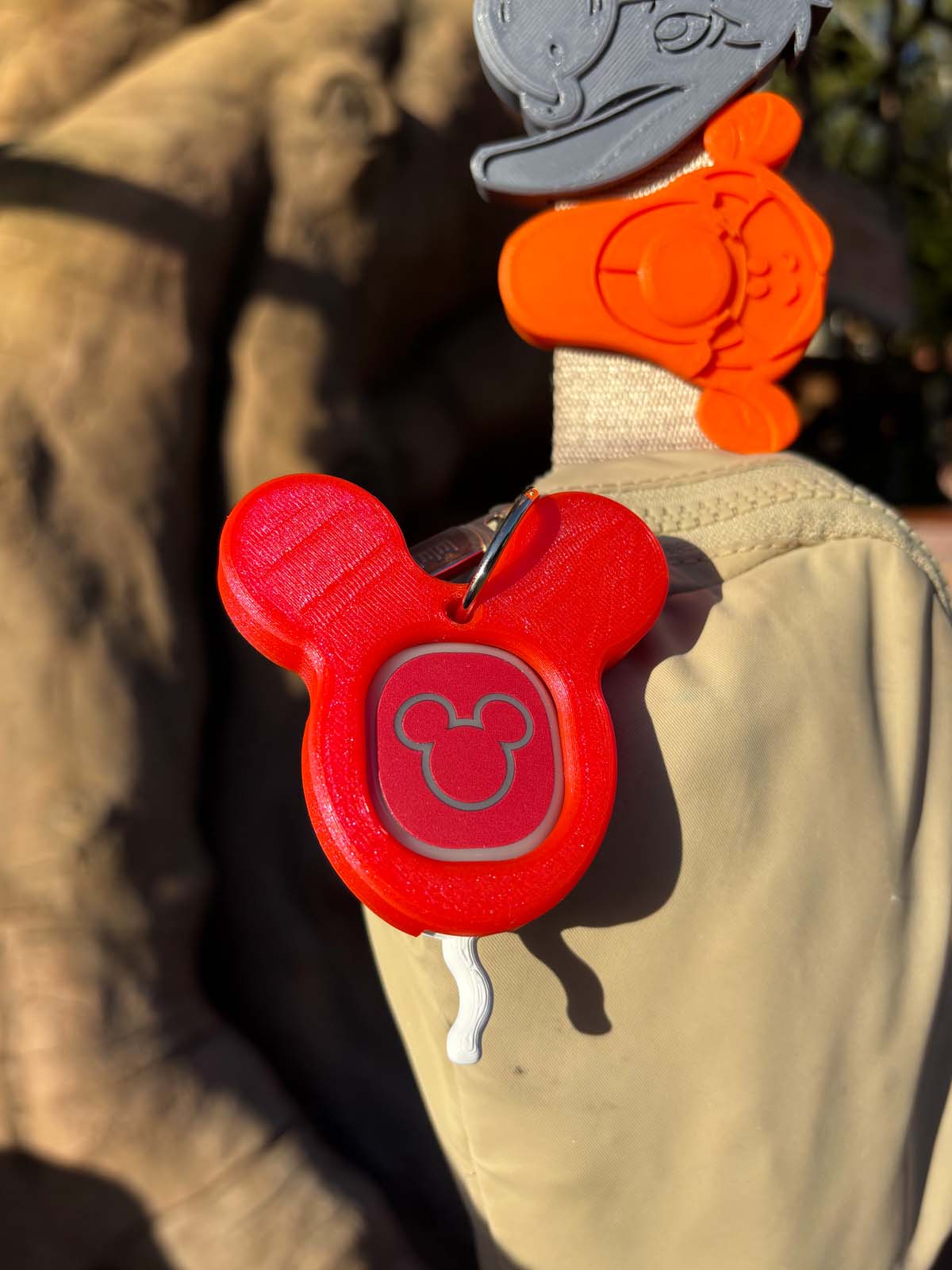 Simply install your Disney MagicBand+ Icon center "puck" into this custom Magic Band Buddy and clip on to belt, clothes, pin lanyard, bag, etc. It will provide easy access to parks, Lightning Lane access, payment kiosks, your resort room, and more while showing off your unique style. Collect them all to coordinate with your outfit, your agenda, or your attitude!