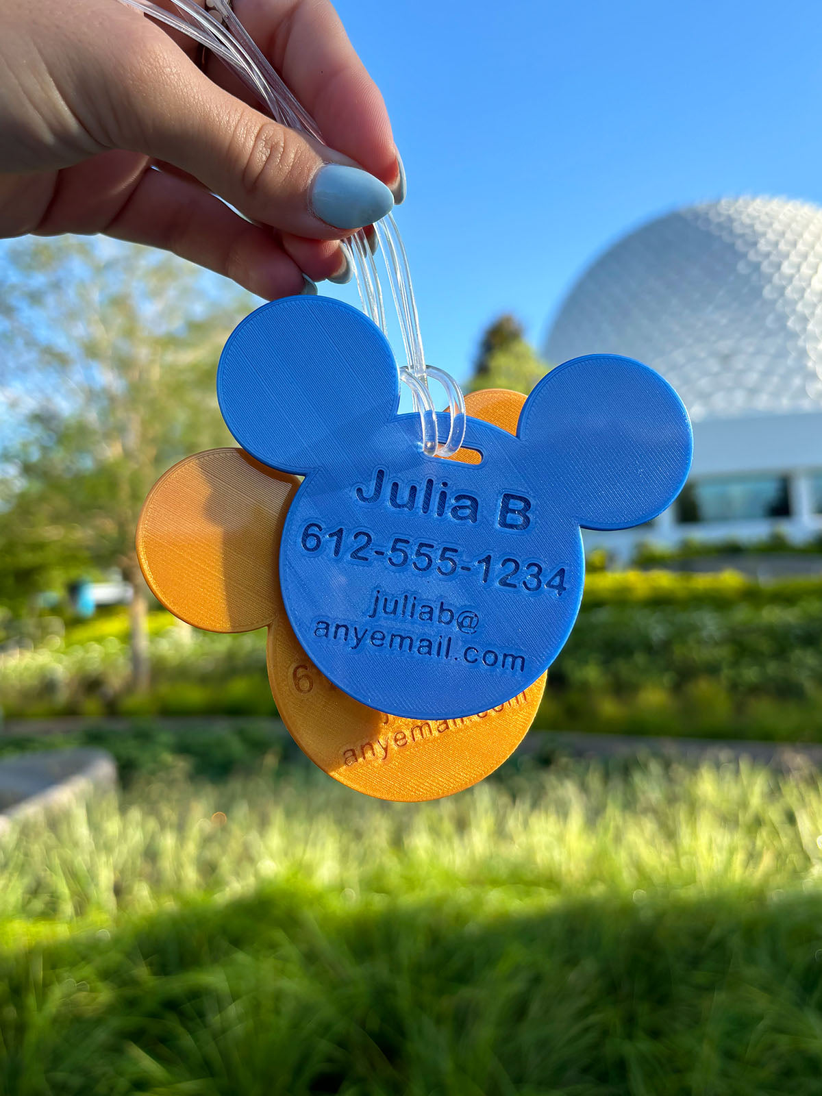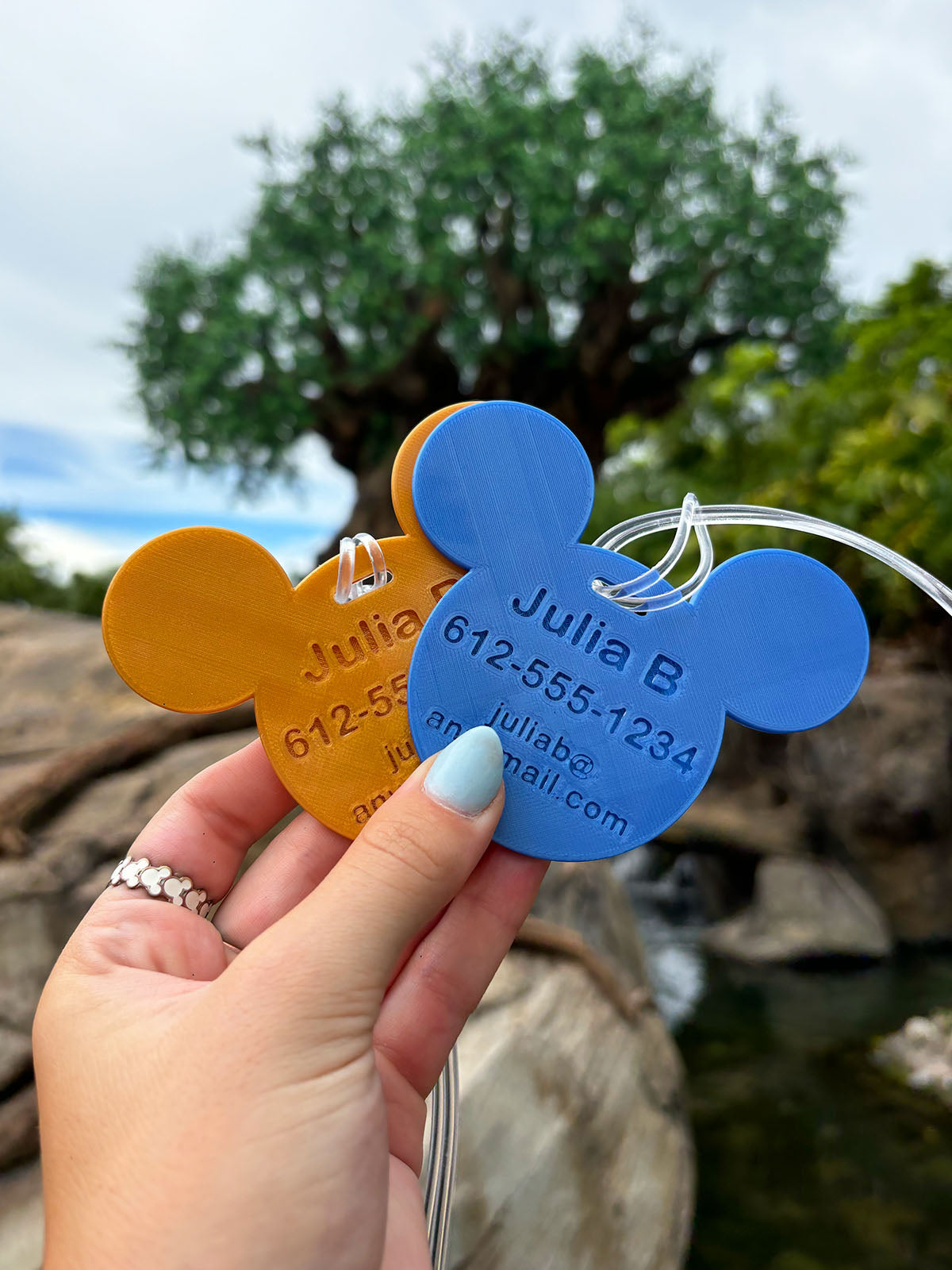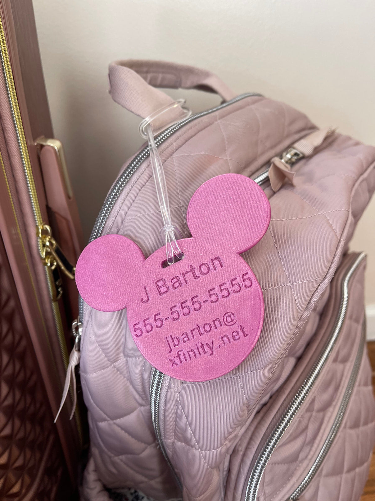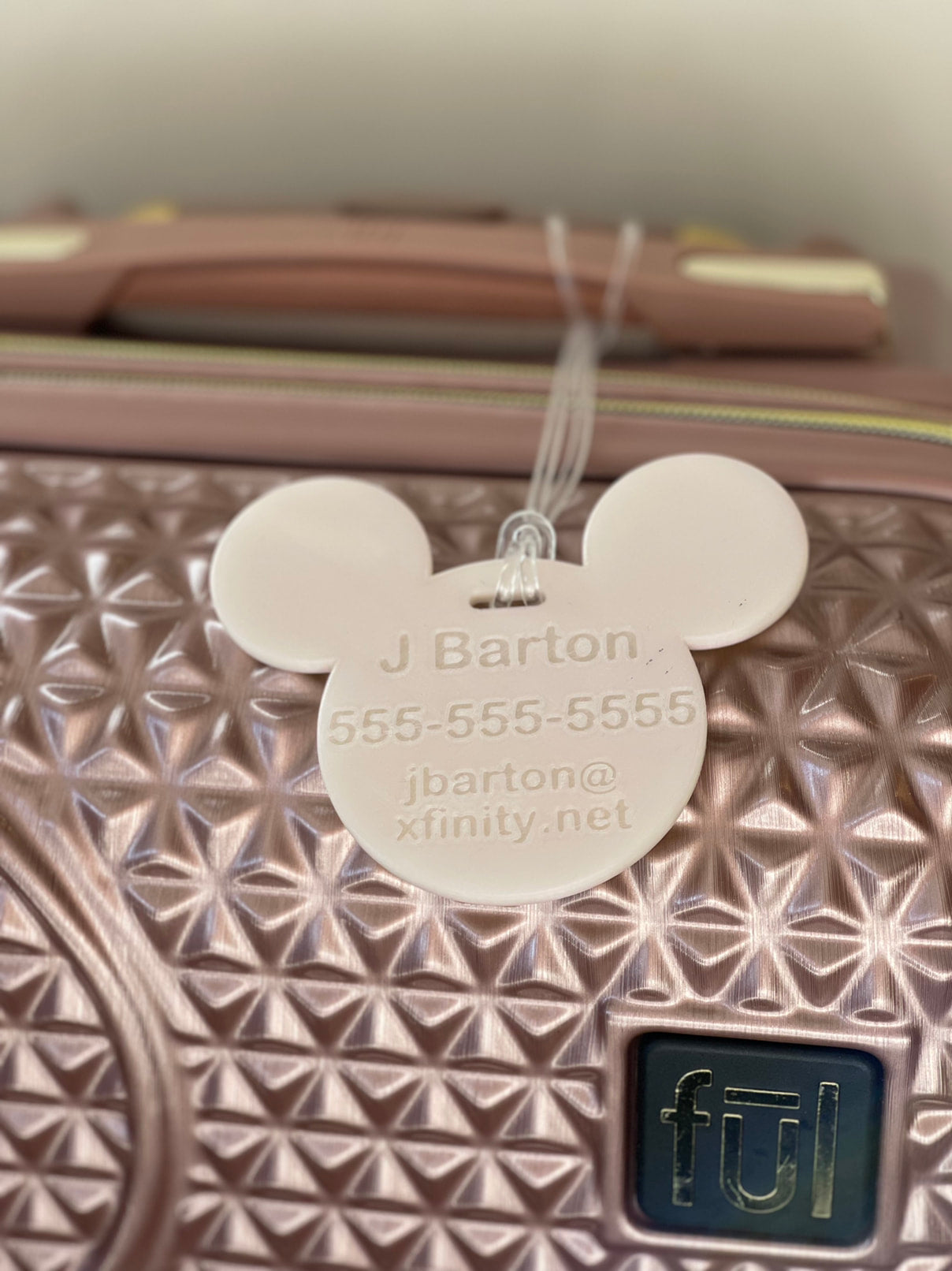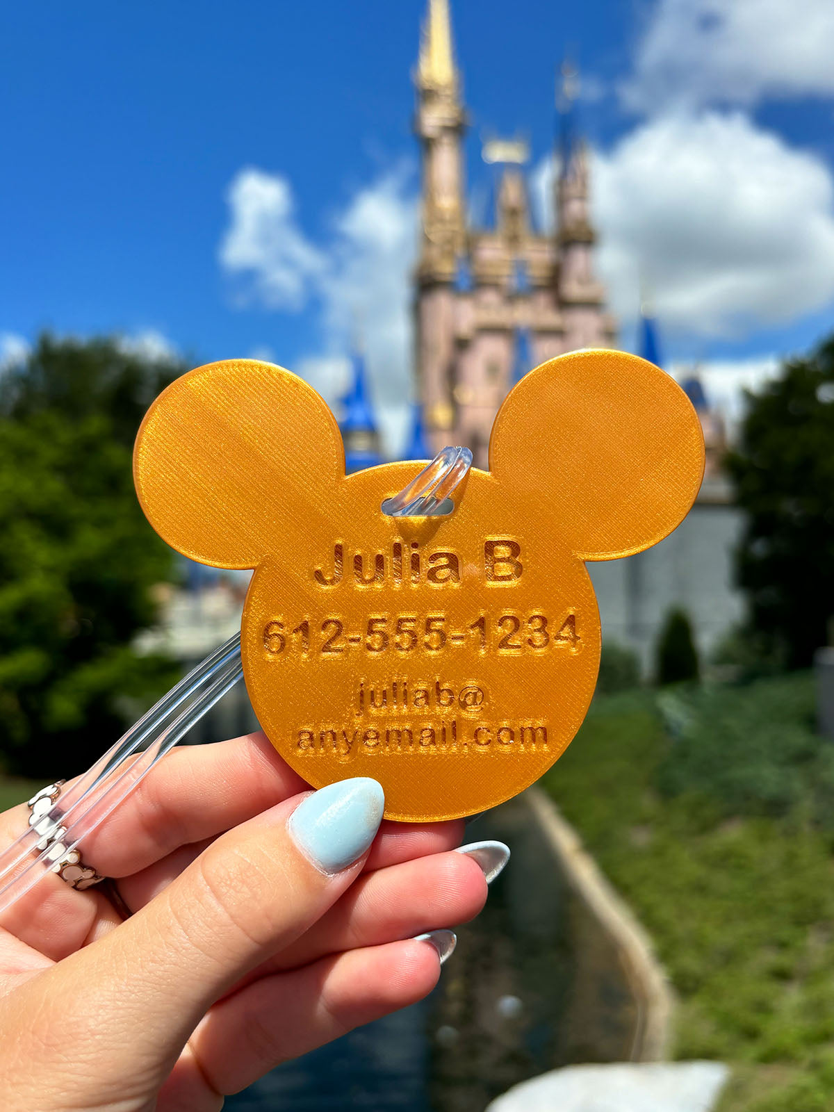 Our durable, hard plastic luggage tag has your contact information embossed on one side and comes in your choice of color to help identify your bag while showing your Disney side! Use the included approximately 9" vinyl lanyard to secure the tag on any of your bags.