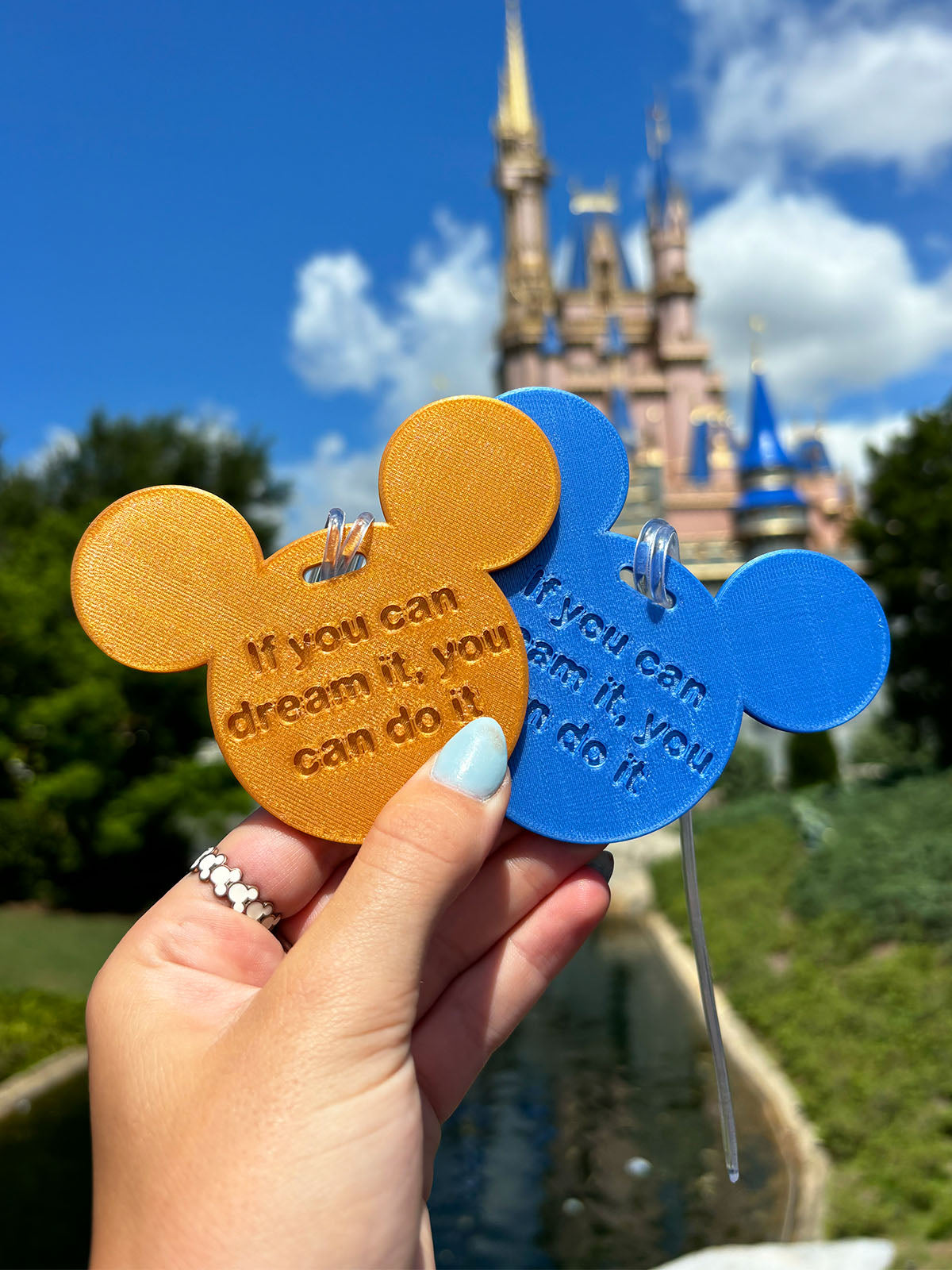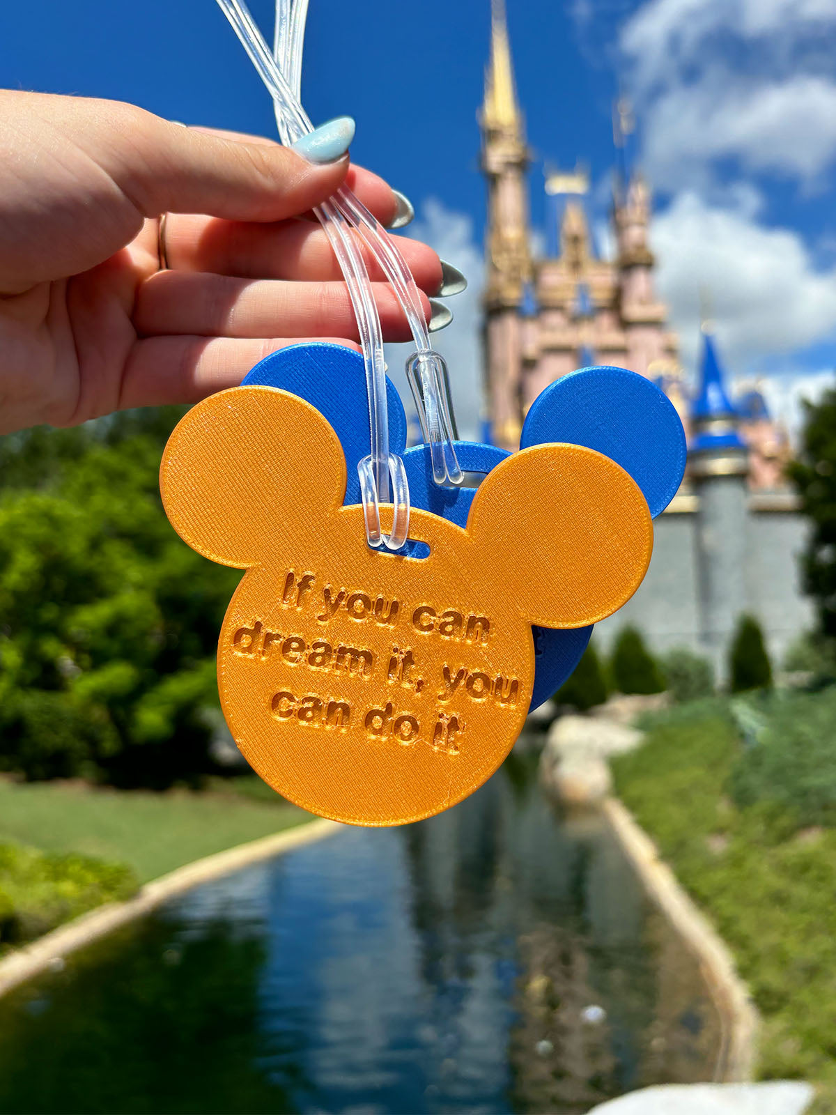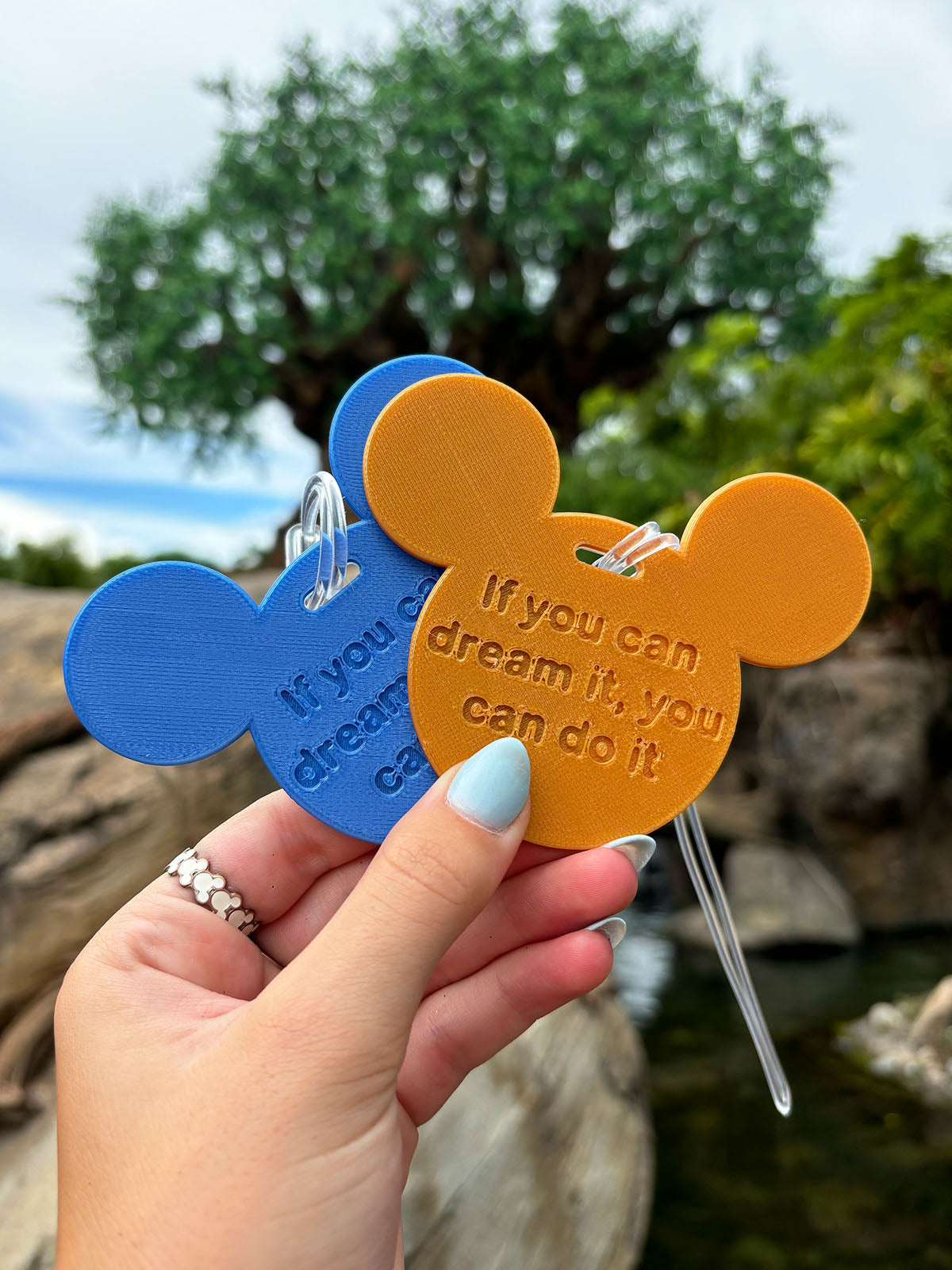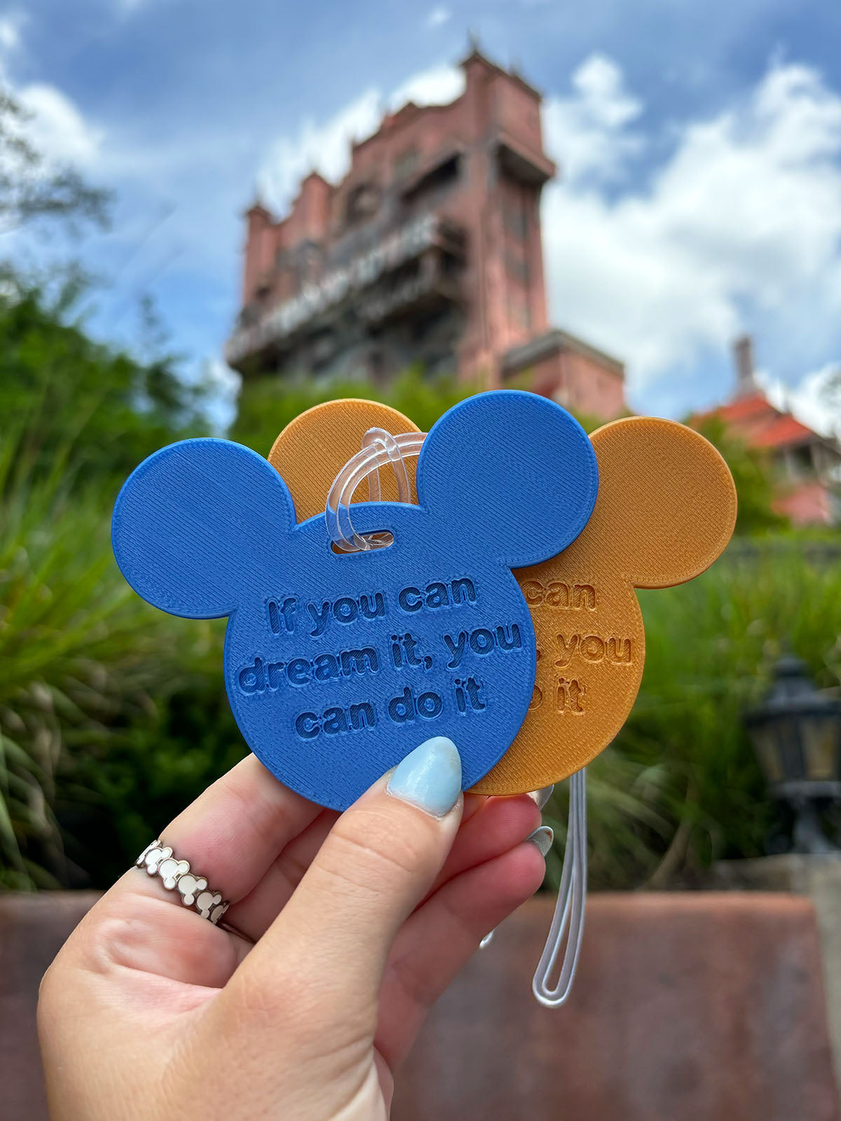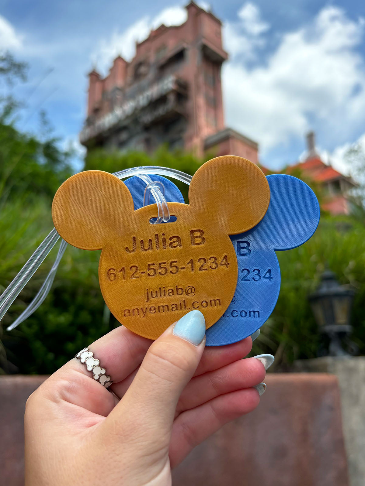 Our durable, hard plastic luggage tag has your contact information embossed on one side and comes in your choice of color to help identify your bag while showing your Disney side! Use the included approximately 9" vinyl lanyard to secure the tag on any of your bags.