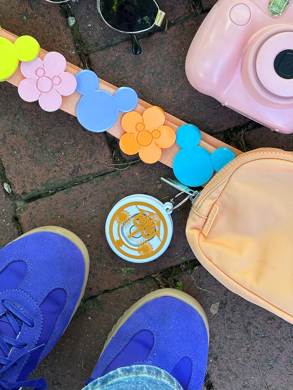 Simply install your Disney MagicBand+ Icon center "puck" into this custom Magic Band Buddy and clip on to belt, clothes, pin lanyard, bag, etc. It will provide easy access to parks, Lightning Lane access, payment kiosks, your resort room, and more while showing off your unique style. Collect them all to coordinate with your outfit, your agenda, or your attitude!