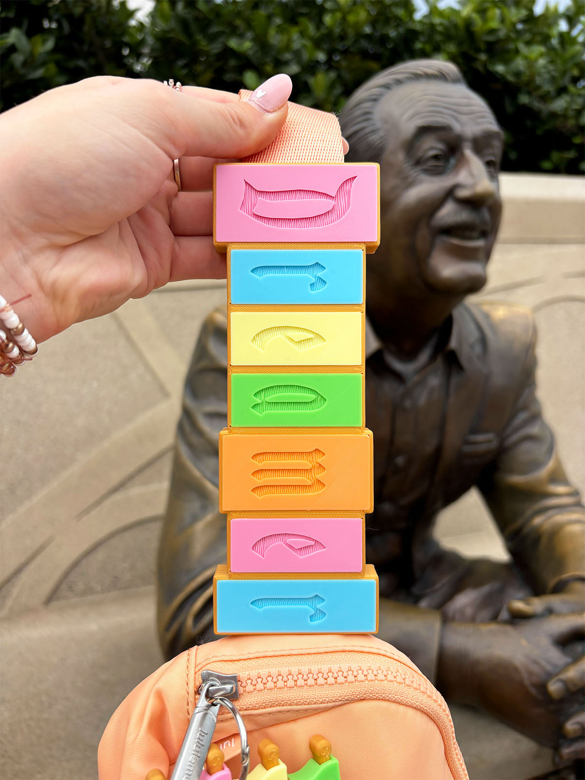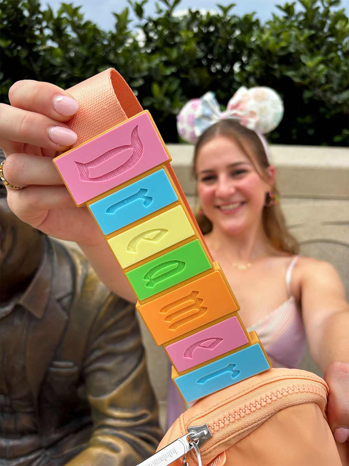 We recommend a Lock Adapter for narrower straps or lanyards less than 1.5" wide. Listing is for one tree charm in green color filament. Other items pictured are not included, but other Bag Charms and Magic Band Buddies are available separately.