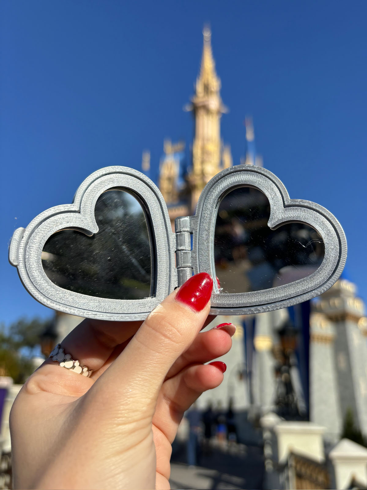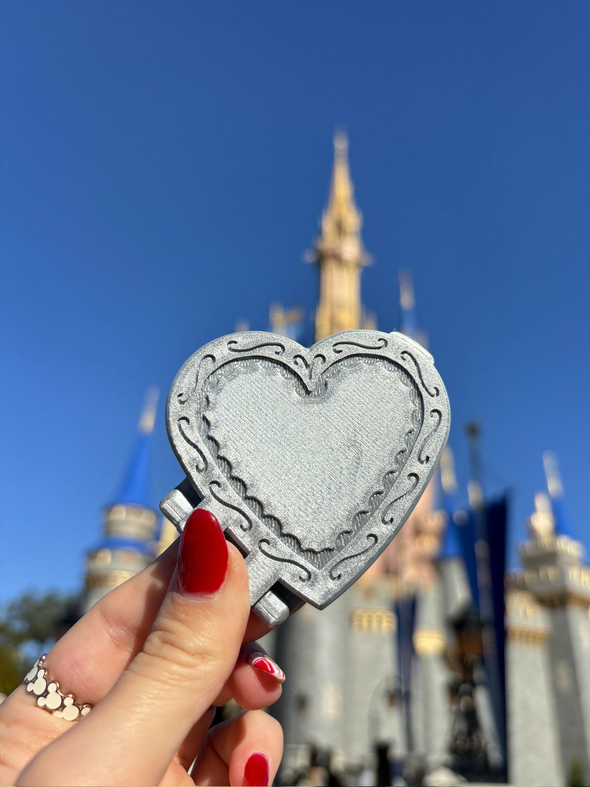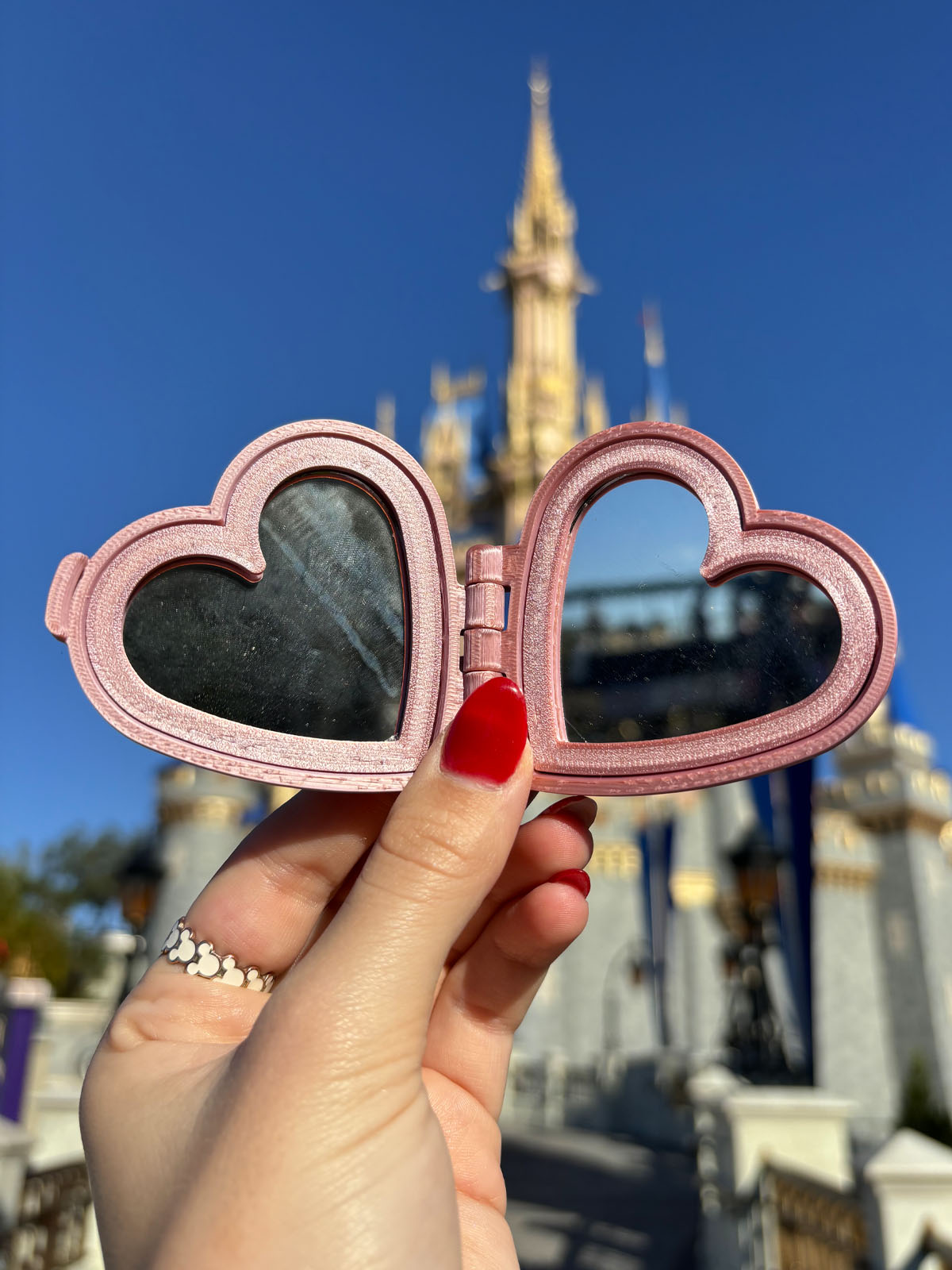 Always have a magical reflection handy in your bag or pocket with our Heart Compact Mirror! Complete with two real glass mirrors.