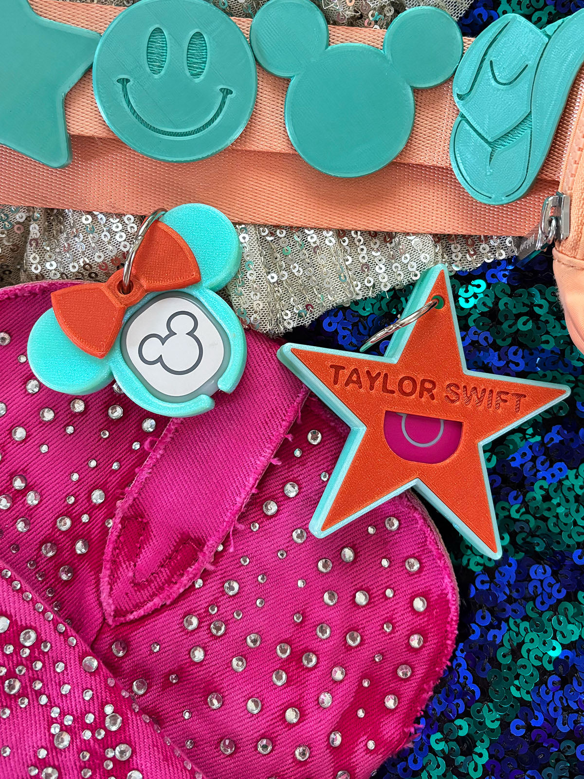 Simply install your Disney MagicBand+ Icon center "puck" into this custom Magic Band Buddy and clip on to belt, clothes, pin lanyard, bag, etc. It will provide easy access to parks, Lightning Lane access, payment kiosks, your resort room, and more while showing off your unique style. Collect them all to coordinate with your outfit, your agenda, or your attitude!