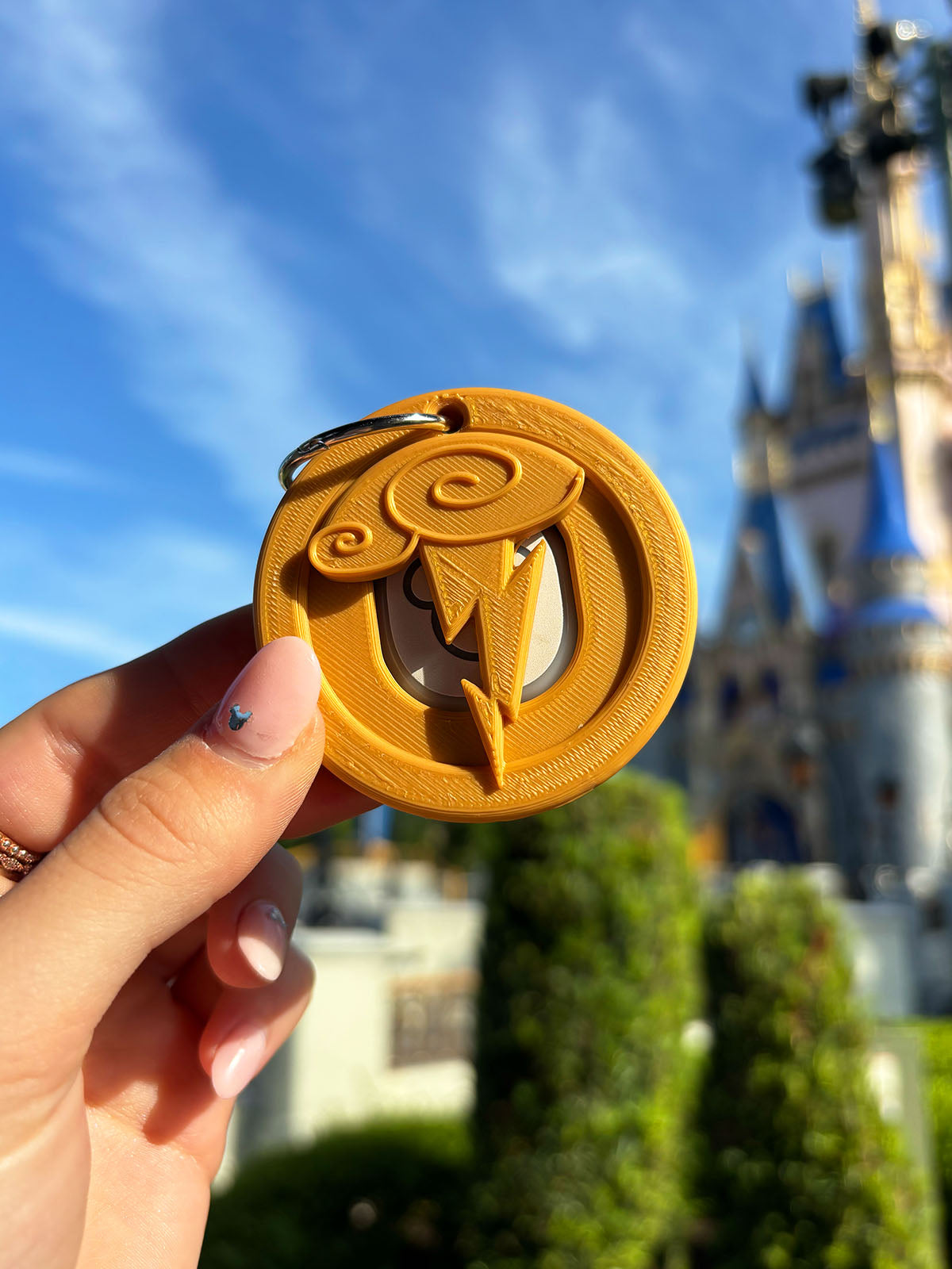 Simply install your Disney MagicBand+ Icon center "puck" into this custom Magic Band Buddy and clip on to belt, clothes, pin lanyard, bag, etc. It will provide easy access to parks, Lightning Lane access, payment kiosks, your resort room, and more while showing off your unique style. Collect them all to coordinate with your outfit, your agenda, or your attitude!