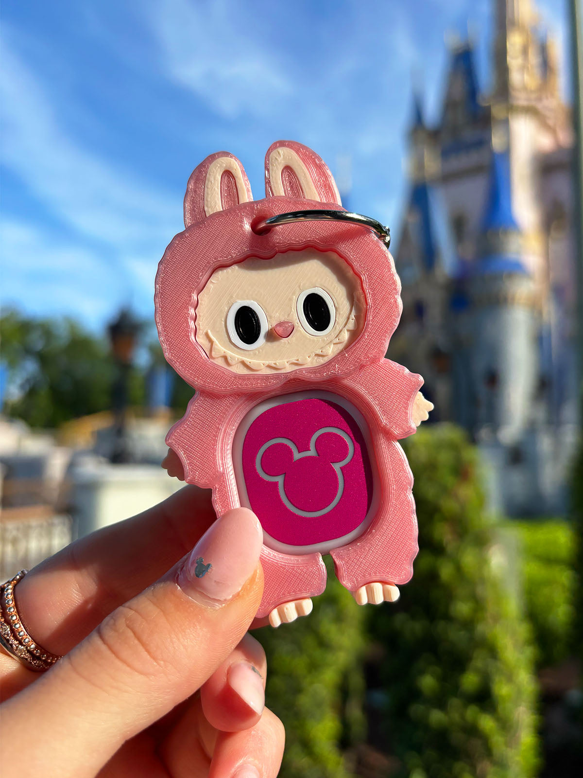 Simply install your Disney MagicBand+ Icon center "puck" into this custom Magic Band Buddy and clip on to belt, clothes, pin lanyard, bag, etc. It will provide easy access to parks, Lightning Lane access, payment kiosks, your resort room, and more while showing off your unique style. Collect them all to coordinate with your outfit, your agenda, or your attitude!