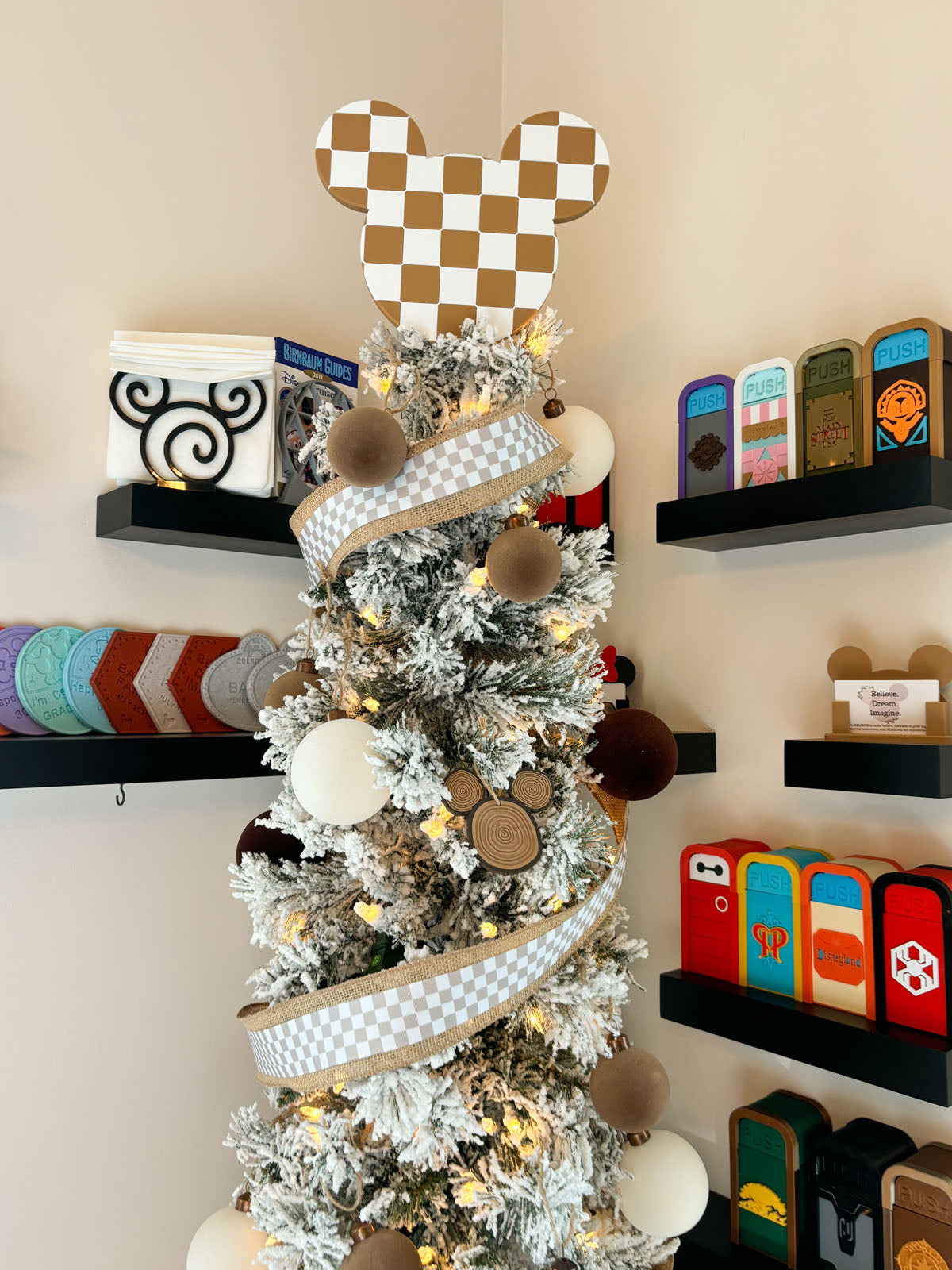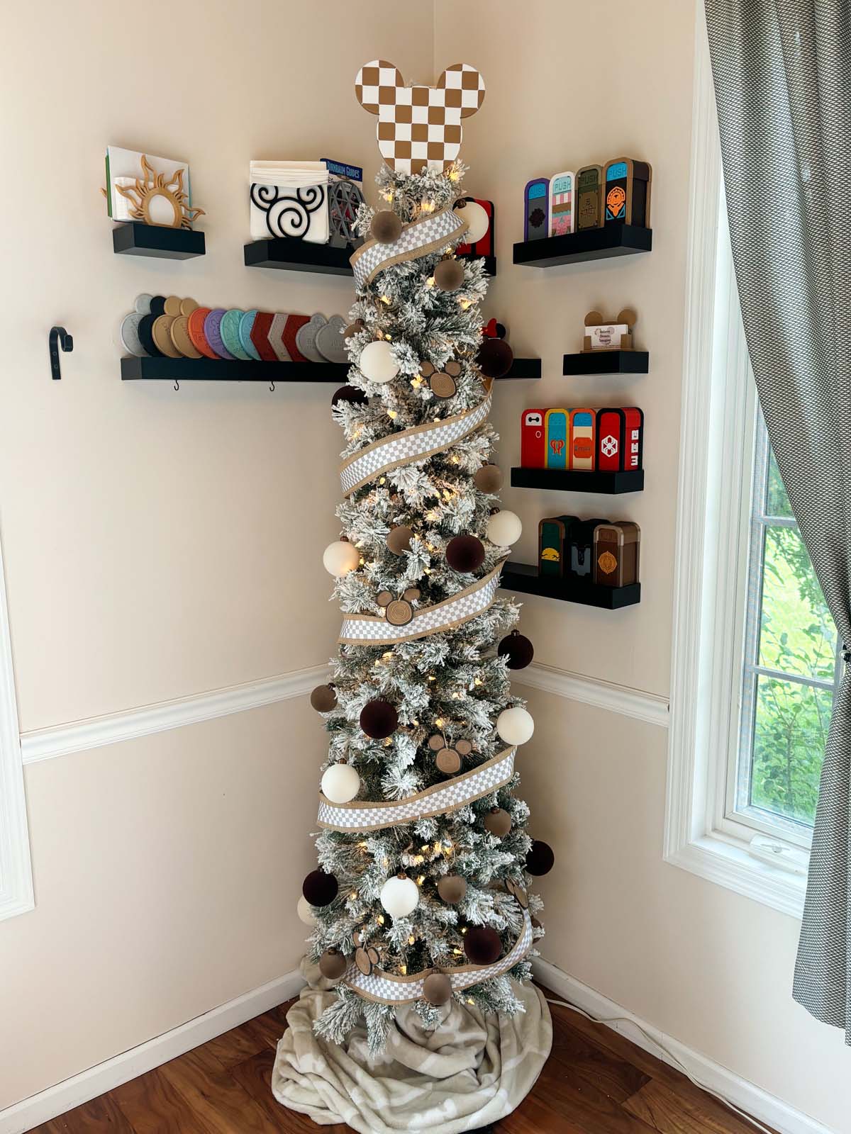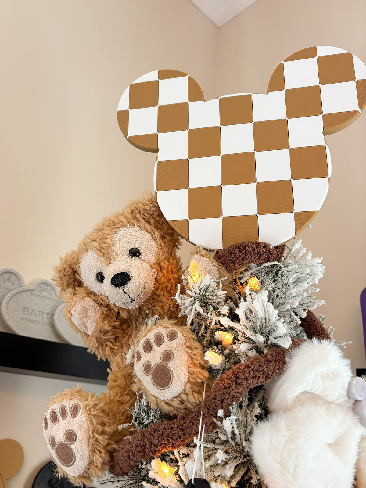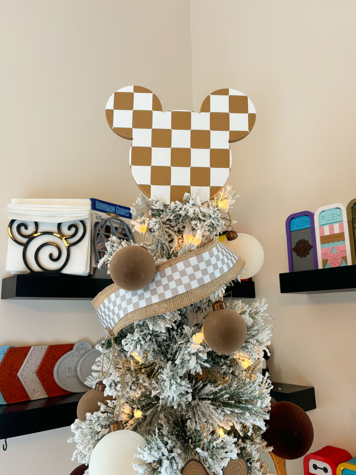 Give any tree the stylish Disney vibe this holiday season with our neutral Checkered Mouse Head Christmas Tree Topper!