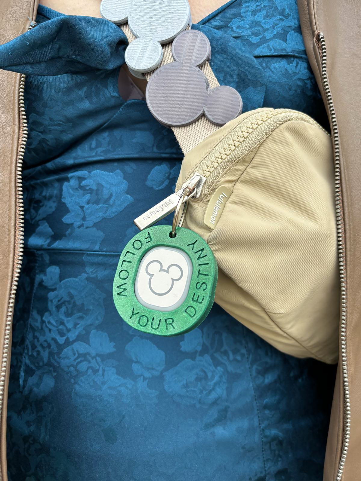 Simply install your Disney MagicBand+ Icon center "puck" into this custom Magic Band Buddy and clip on to belt, clothes, pin lanyard, bag, etc. It will provide easy access to parks, Lightning Lane access, payment kiosks, your resort room, and more while showing off your unique style. Collect them all to coordinate with your outfit, your agenda, or your attitude!