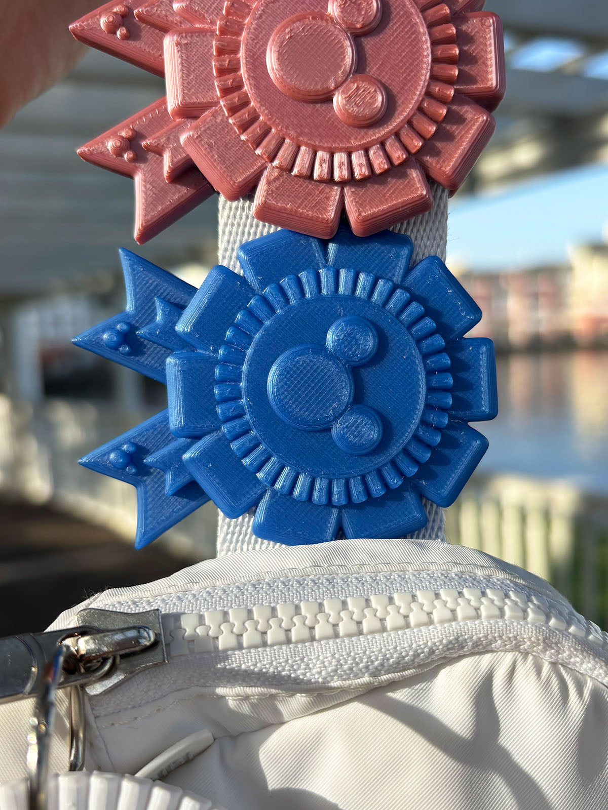 We recommend a Lock Adapter for narrower straps or lanyards less than 1.5" wide. Listing is for Bag Charm specified. Other items pictured are not included, but other Bag Charms and Magic Band Buddies are available separately.