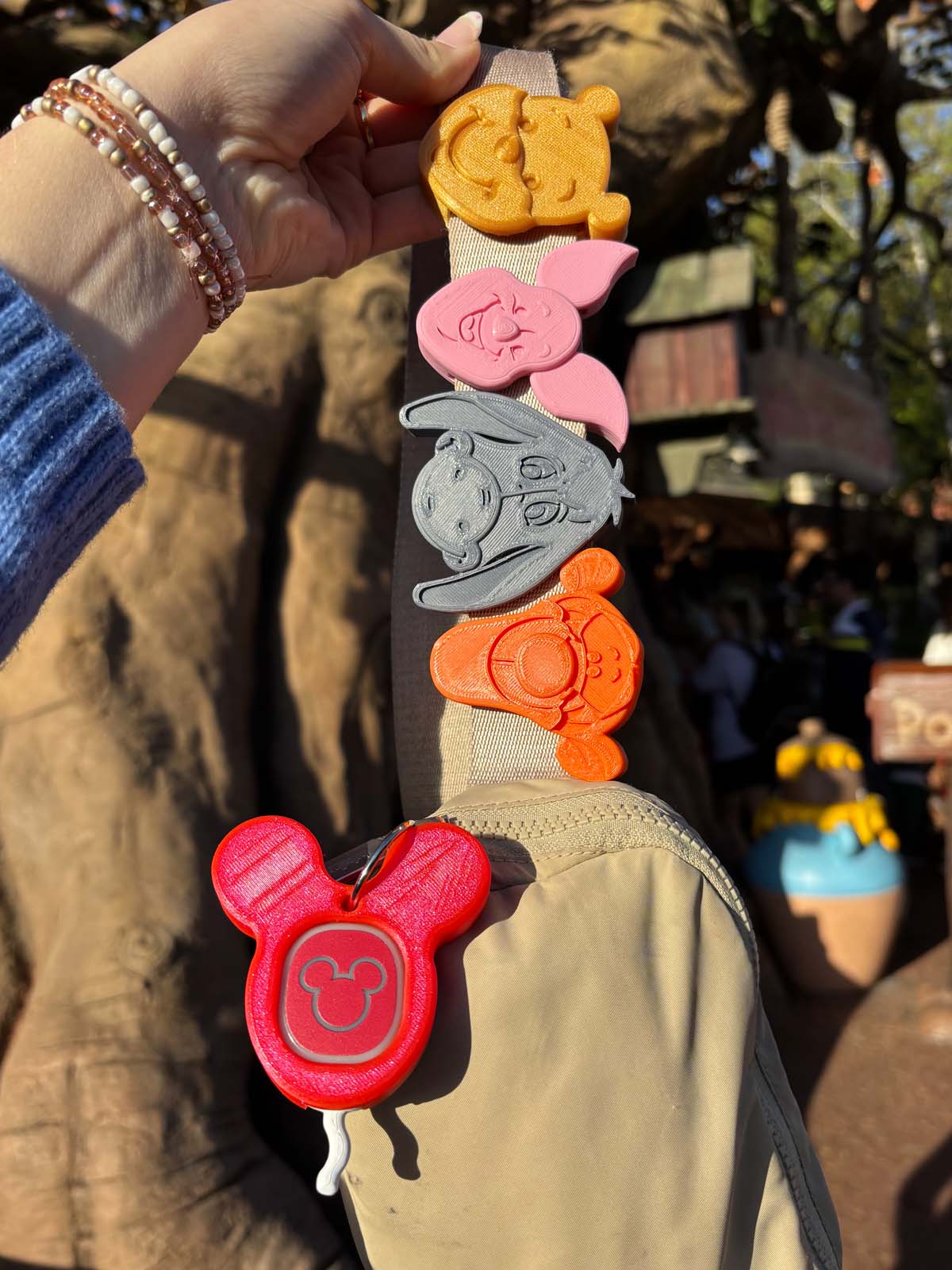 We recommend a Lock Adapter for narrower straps or lanyards less than 1.5" wide. Listing is for Bag Charm specified. Other items pictured are not included, but other Bag Charms and Magic Band Buddies are available separately.